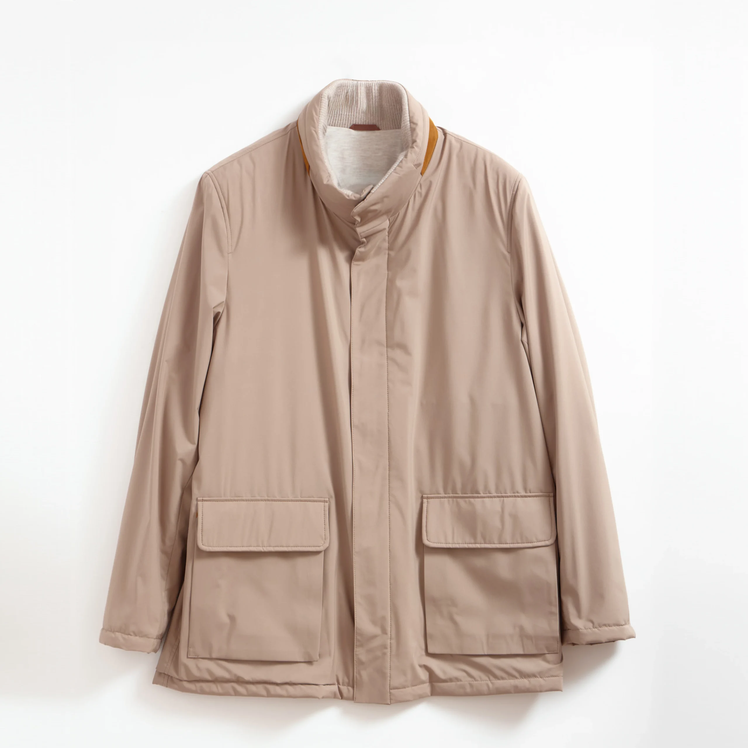 The Hamad Sand Whisper Jacket perfectly combines reliable weather resistance with understated sophistication. Crafted from waterproof Windstorm fabric, it keeps you dry and comfortable through all conditions.
