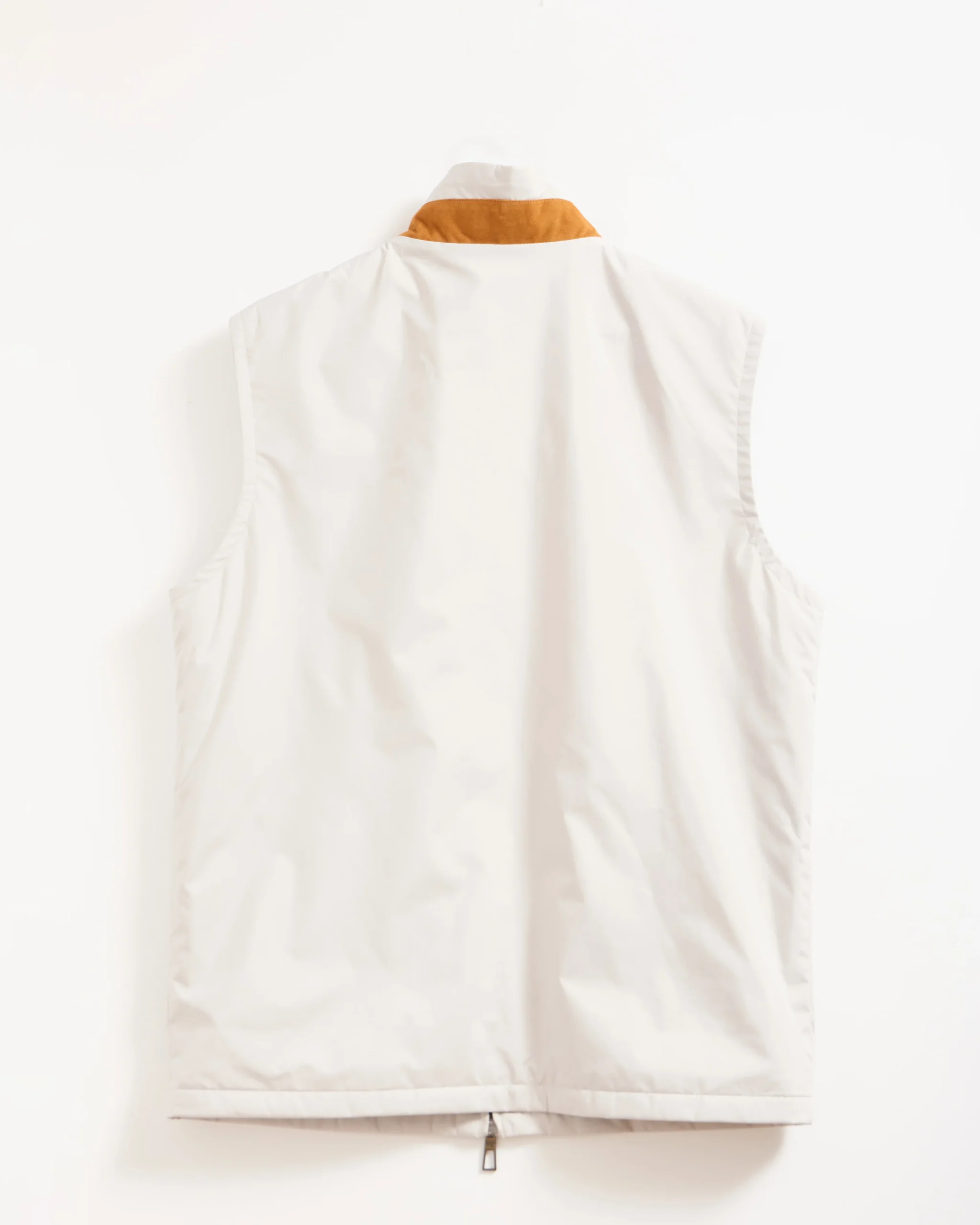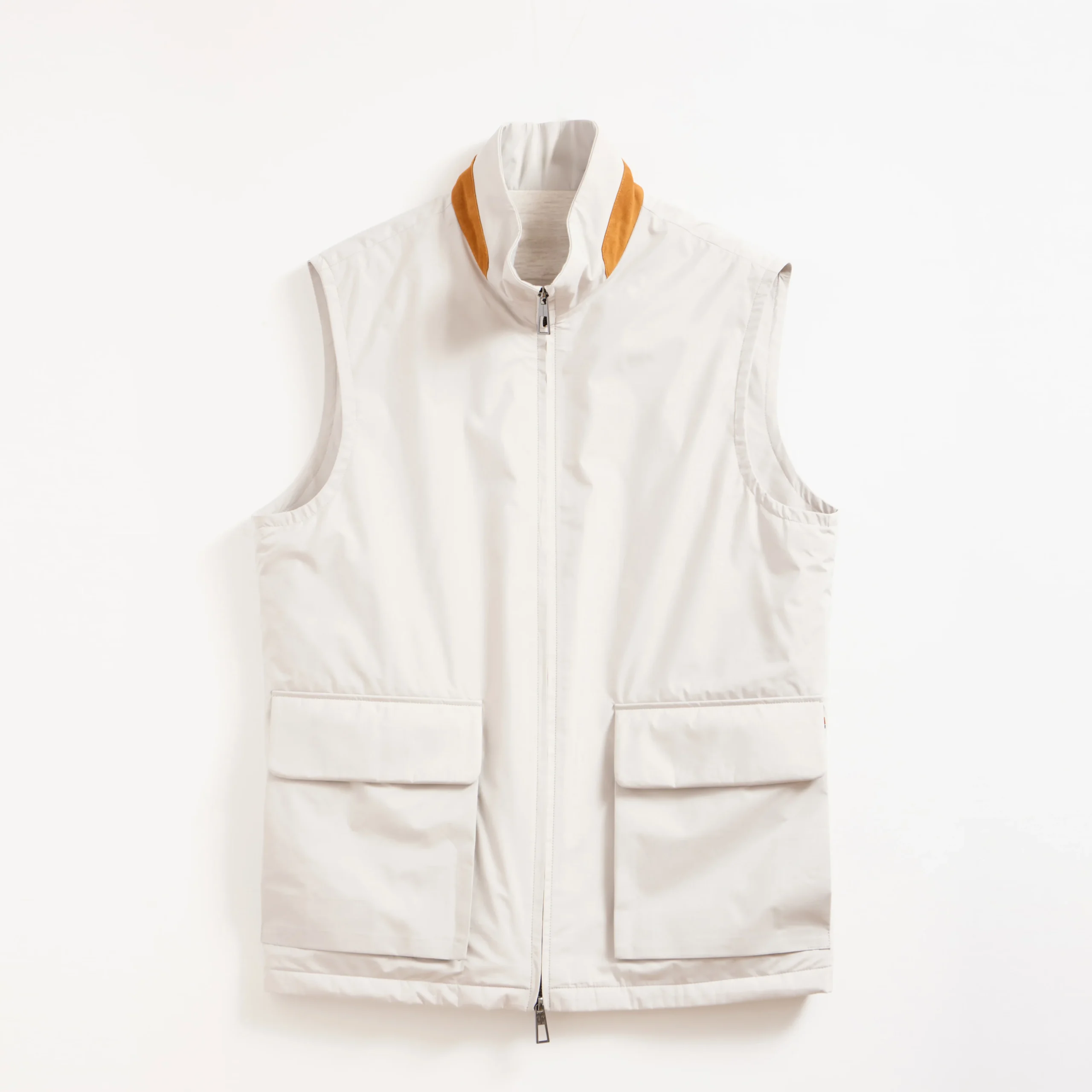 Its clean off-white color provides a versatile, neutral look that pairs effortlessly with other layers or stands alone for a lighter feel. Featuring a front zip closure, sleeveless design, and two pockets, the Hamad Snow Veil Vest is a stylish and practical addition to any wardrobe, perfect for layering over hoodies or sweaters on chilly days.