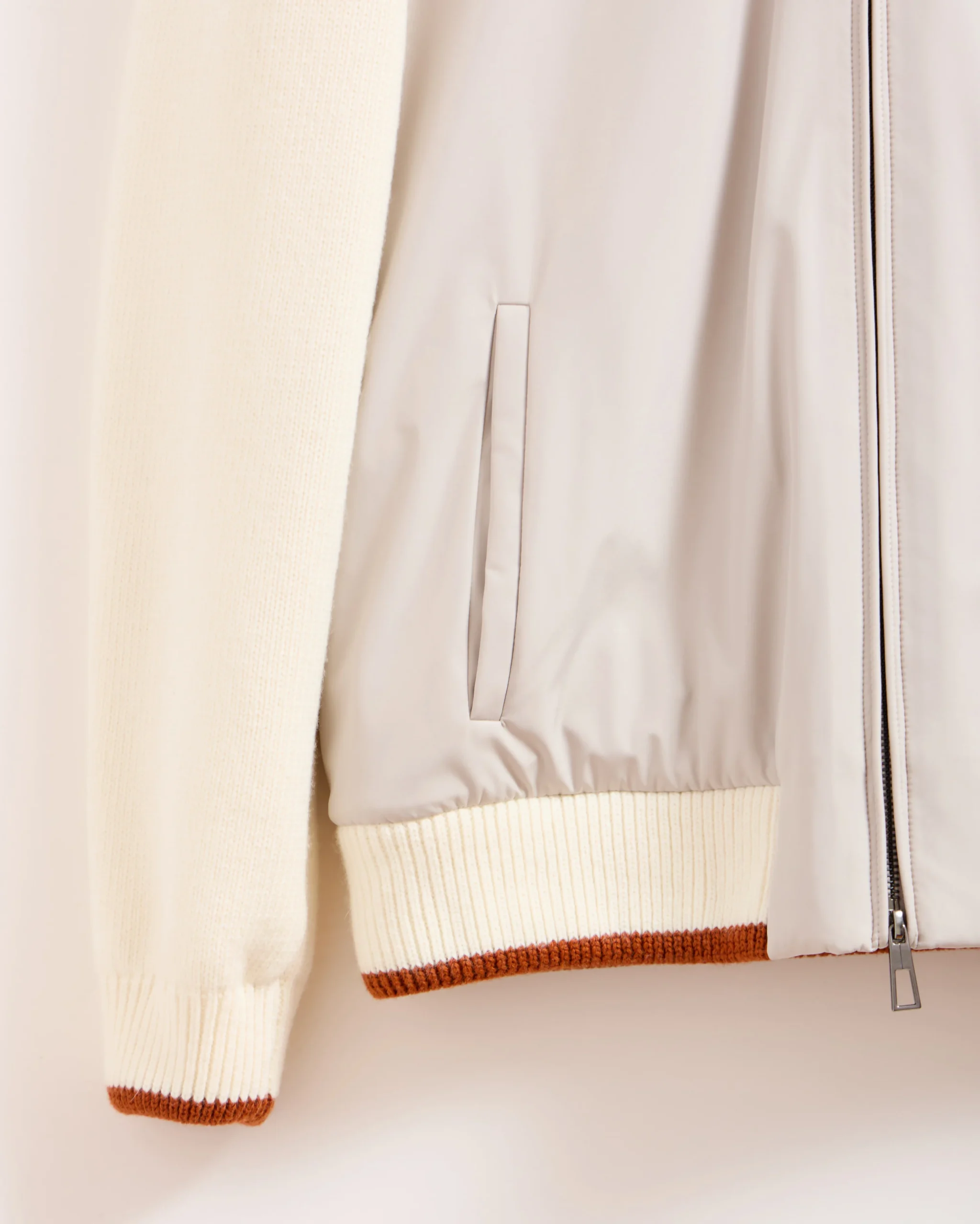 يتميز بلونه الكريمي الهادئ الذي يضيف لمسة كلاسيكية تناسب جميع الإطلالات. تصميمه مزود بسحّاب أمامي، أكمام كاملة، وغطاء للرأس ليمنحك حماية مثالية في الأجواء الباردة. كما يحتوي على جيبين جانبيين عمليين دون المساس بالأناقة.